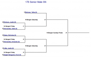 Brackets for the open class tournament can be found here. Below are the brackets for the novice categories which are being contested.